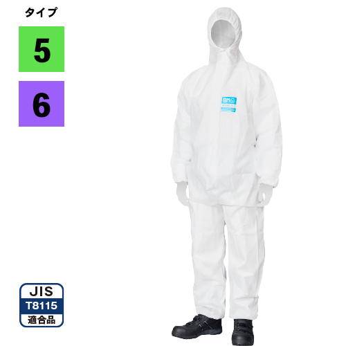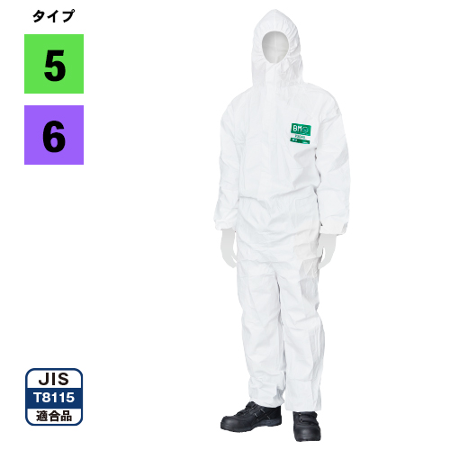 化学防護服 バリアーマン P6040 タイプ5/6 使い捨て 防塵服