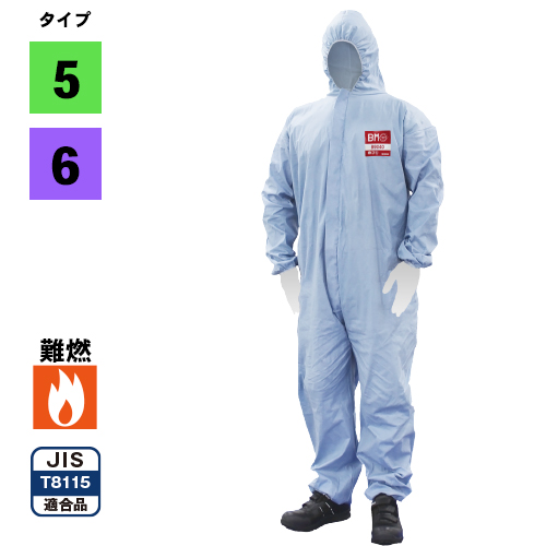 難燃化学防護服 バリアーマン B9040 タイプ5/6 使い捨て